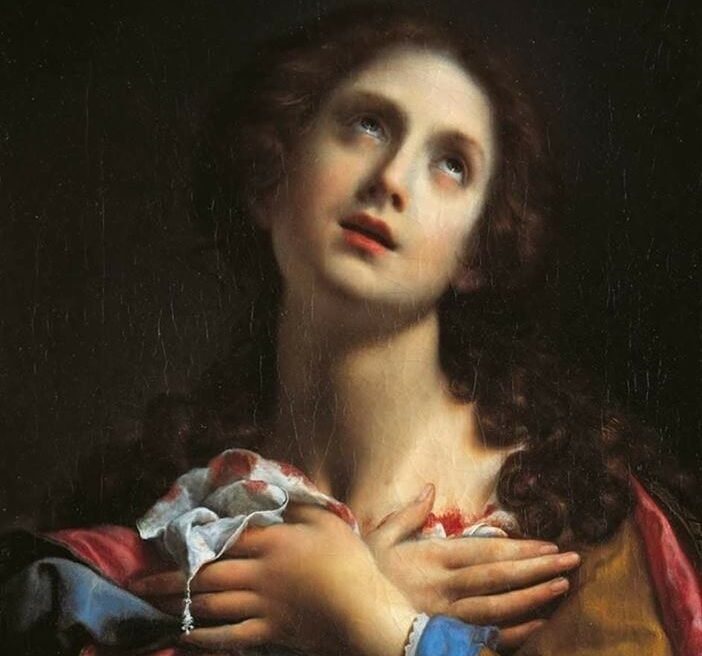 Nascida na Sicília no século III, ela consagrou sua pureza a Deus e recusou as investidas de um governador romano. Por sua fidelidade, foi torturada e teve seus seios arrancados.