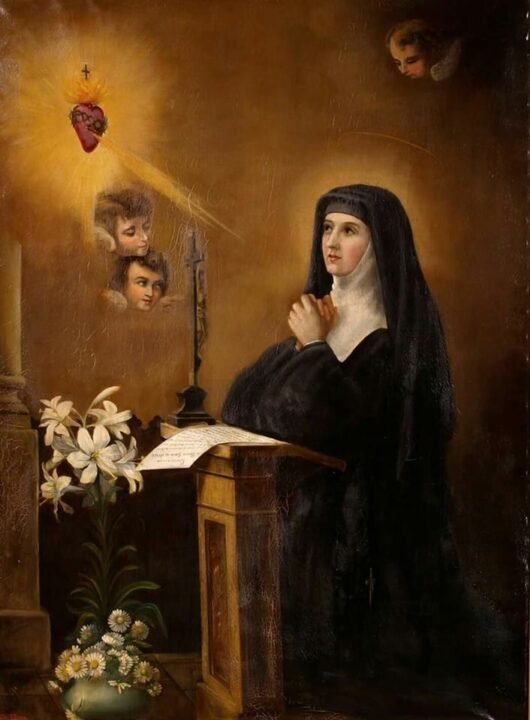 Santa Maria Margarida Alacoque morreu jovem, aos 43 anos de idade, em 17 de outubro de 1690 e foi canonizada em 1920, pontificado do Papa Bento XV.