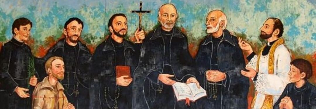 Do grupo canadense são os padres João de Brébeuf, Antônio Daniel, Carlos Garnier, Natal Chabanel e o irmão Gabriel Lalemant; do grupo estadunidense, os padres Isaac Jogues, João de la Lande e o irmão Renato Goupil.