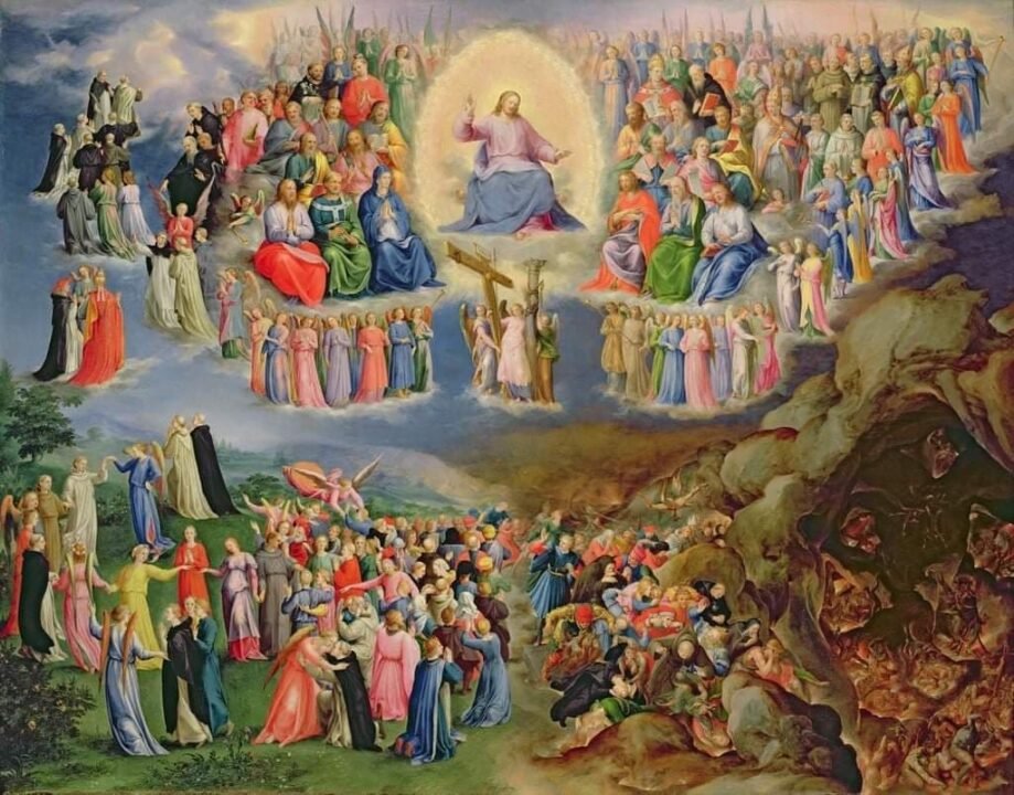 Os santos são a multidão dos eleitos (cf. Ap 7, 2-4.9-14), que formam a assembleia celeste dos intercessores, dos que viverem as bem-aventuranças (cf. Mt 5,1-12) e já contempla a Deus face a face, pois o ser humano é chamado a participar da vida de Deus (1Jo 3,1-3; Ap 22, 4).