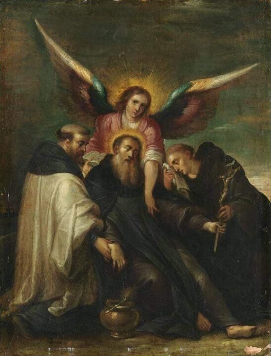 Seis dias antes da sua morte, mandou abrir a sepultura. Pouco depois atacado de febres, começou a ser atormentado pela violenta temperatura. Como dia a dia se agravasse o mal, no sexto dia fez-se levar ao oratório pelos discípulos; aí muniu-se, para a partida, com a comunhão do Corpo e do Sangue do Senhor; a seguir, apoiando nos braços dos discípulos os membros enfraquecidos, ficou de pé com as mãos elevadas para o céu, e entre palavras de oração exalou o último suspiro.