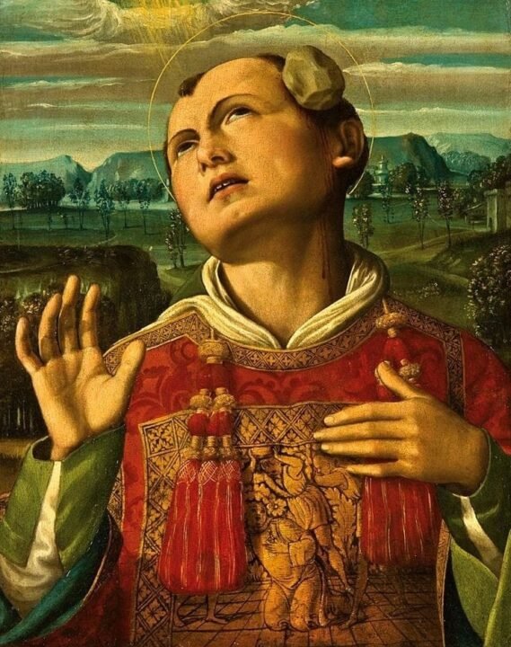O relato da paixão de Estêvão é moldado por Lucas sobre o da paixão de Cristo. Como o Mestre, também Estêvão morreu perdoando a seus algozes: “Cheio do Espírito Santo, Estêvão olhou para o céu e viu a glória de Deus e viu também Jesus, de pé, à direita de Deus. E disse: ‘Estou vendo o céu aberto e o Filho do Homem, de pé, à direita de Deus’. Eles, porém, dando grandes gritos e tapando os ouvidos, avançaram todos juntos contra Estêvão, arrastaram-no para fora da cidade e começaram a apedrejá-lo. As testemunhas deixaram seus mantos aos pés de um jovem, chamado Saulo. E apedrejavam Estêvão, enquanto ele invocava: “Senhor Jesus, acolhe o meu espírito”. Dobrando os joelhos, gritou com voz forte: ‘Senhor, não lhes atribua este pecado’. Com essas palavras, morreu” (At 7,55-60).