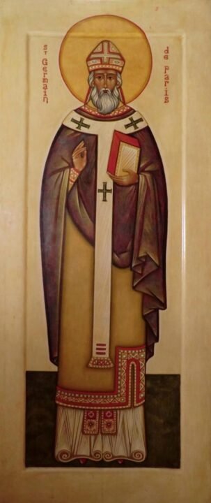 São Germano nasceu no território de Autun por volta do ano 496. O início de sua vida foi atribulado. Sua mãe tentou abortá-lo. Uma tia quis envenená-lo, mas os planos frustraram-se. Isto graças à criada que se equivocou. Em vez de dar a Germano o copo de vinho envenenado, deu-o a Estratídio, seu primo e filho da mandante. Na juventude, destacava-se pelo seu ardor espiritual. Ao ser ordenado sacerdote, tornou-se Abade de São Sinforiano, mas em consequência de sua austeridade, os monges destituíram-no do cargo. Foi abençoado nessa época com os dons de milagres e profecia. Tinha o costume de permanecer em vigília grande parte da noite na igreja, em oração, enquanto os monges dormiam. Certa noite, em sonho, um venerável ancião lhe apresentou as chaves da cidade de Paris e lhe transmitiu que Deus entregava aos seus cuidados os habitantes daquela cidade, para que os salvasse da destruição. Quatro anos após este divino conselho, em 554, acontecendo de se encontrar em Paris quando a sé ficou vacante pelo falecimento do bispo Eusébio, acabou elevado à cátedra episcopal, embora lutasse com muitas lágrimas na recusa do cargo.
