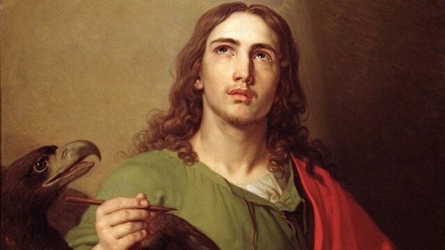 Filho de Zebedeu (Mc 1,20; Mt 4,21), irmão de Tiago, o Maior (Lc 5,10), discípulo de São João Batista (Jo 1,35-41), foi um dos primeiros a passar para o seguimento de Jesus. É o discípulo predileto que, na última ceia, reclinou a cabeça no peito de Jesus (Jo 13,23-25). Testemunha da transfiguração (Mt 17,1) e da agonia do Senhor (Mc 14,33), está presente ao pé da cruz, onde Jesus lhe confia a Mãe (Jo 19,26-27). Junto com Pedro, viu o sepulcro vazio e acreditou na ressurreição do Senhor (Jo 20,1-9). Evangelista teólogo, penetra profundamente o mistério do Verbo feito homem, cheio de graça e de verdade (Jo 1,1-14). Na primeira carta, cume de toda a teologia sapiencial, dá-nos a mais alta definição da divindade: Deus é amor (1Jo 4,8). Exilado na ilha de Patmos, foi arrebatado em êxtase no dia do Senhor (Ap 1,9-10) e teve as visões que descreveu no Apocalipse, último livro do Novo Testamento. Sua memória em 27 de dezembro é lembrada num “Breviário” siríaco do fim do séc. IV e no Martirológio Jeronimiano (séc. VI).