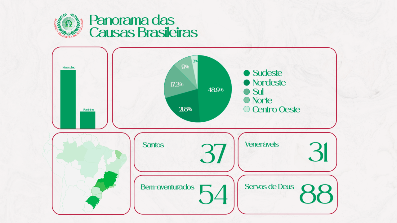 Dos 26 estados da federação, atualmente 20 possuem causas de beatificação e canonização. São Paulo e Minas Gerais lideram o ranque, com 30 e 28 causas, respectivamente.